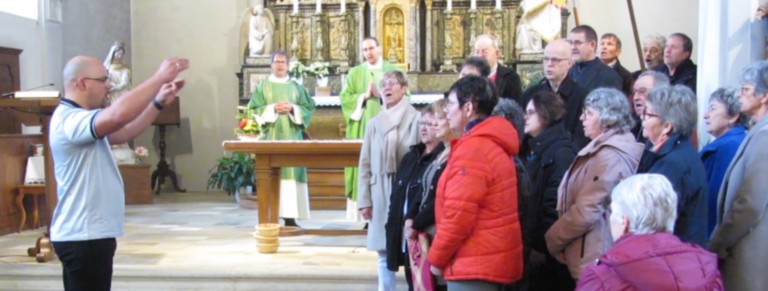 Le doute s'installa pour l'intéressé lors de l'arrivée prématurée de quelques membres de la FCJ dans les premiers bancs, mais il fallait au premier chef assurer les chants de la messe dans son registre, ce à quoi il s'appliqua avec sa rigueur coutumière et sa voix chaleureuse. Il faut bien admettre que la qualité était au rendez-vous. Tout y était : la diction, l'intonation, l'équilibre des voix étaient une invitation pour l'assemblée à chanter de concert avec cette excellente chorale, dont hérite le nouveau directeur Quentin Monin.