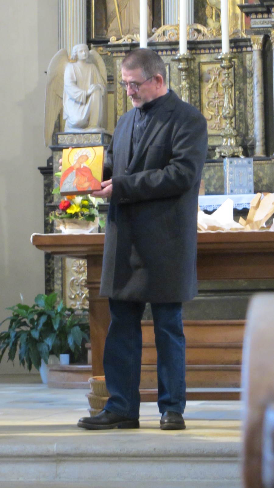 Le président de paroisse, dans son intervention, insiste sur le rôle primordial qu'a tenu Pierre-André Clivaz dans la vie musicale de la communauté paroissiale, en soulignant ses compétences musicales, son professionnalisme, sa sensibilité et son humanité. Il lui adresse ses remerciements au nom des paroissiens de Courchapoix et de Vicques, en y associant les choristes et l'organiste. "Qu'il s'agisse de baptêmes, de premières communions, de confirmations, de funérailles et autres célébrations religieuses, Pierrot a toujours su accompagner ces instants avec justesse et émotion." Le président salue ensuite et remercie M. Quentin Monin, de Mervelier, qui prend la succession de Pierre-André. Il lui souhaite plein succès et beaucoup de satisfactions dans cette nouvelle fonction.